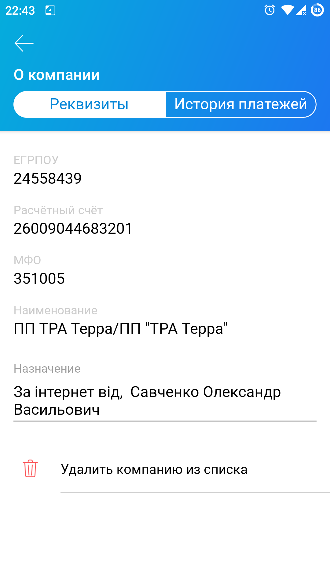 выбираете "Платёж по Украине" -> организация ПП ТРА "Терра" -> "Оплата за услуги".