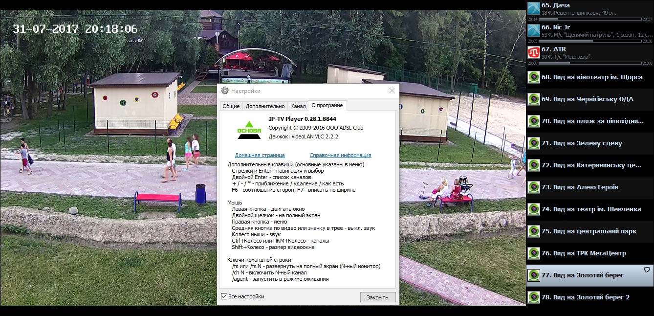 Адрес плей-листа правильный. Транслируются телеканалы пакета "Базовый" аналогового кабельного ТВ, веб-камеры открываются.