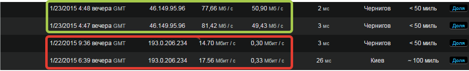 Позвонили сегодня утром с сервиса, сказали вечером подойдут мастера. Пришел с работы, проверяю скорость приема передачи данных, а она уже соответствует заявленной. Через полчаса, в районе 19 часов пришли мастера, сказали что сегодня на доме заменили "Мастер"... Теперь порядок. Для примера выкладываю скрин вчерашних и сегодняшних замеров: