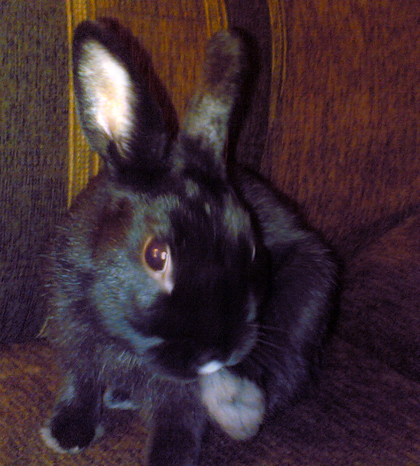 Подарили сестре моей год назад декоративного кролика, черного с белой плямкой на носу (возраст около полутра лет).