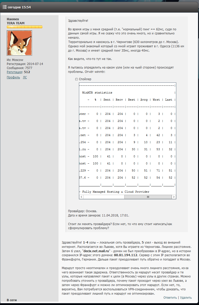 https://2ip.ua/ru/services/ip-service/ping-traceroute, выполнив traceroute и ping.