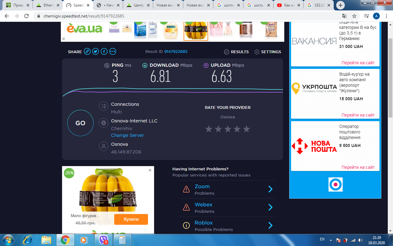 Re: низька швидкість Інтернету