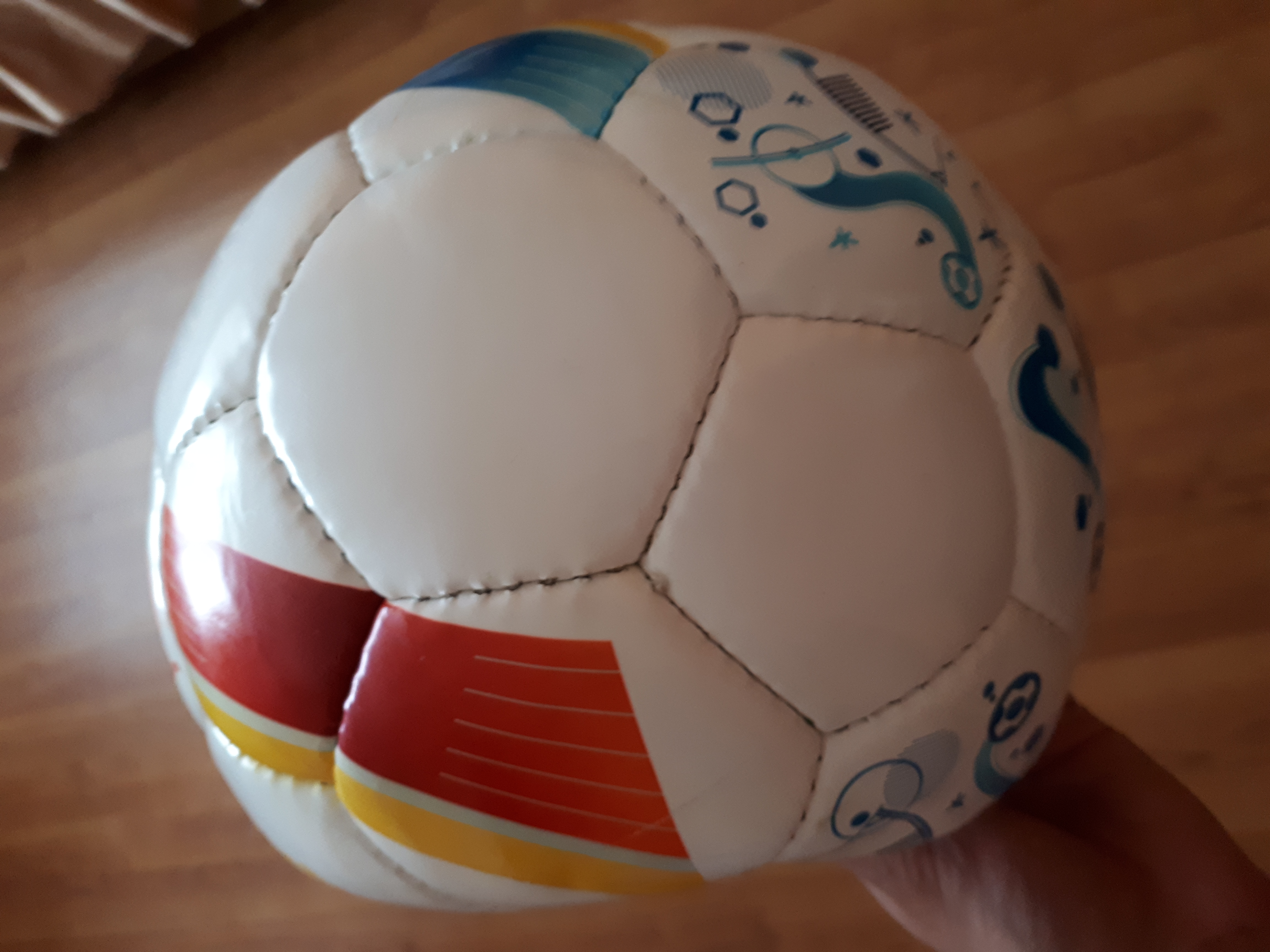 1. Мяч Евро-2016 от канал футбол 1, какой то бракованный. Быстро спускает. После полного накачивания, дома лежит, через пару дней уже полностью спущенный.