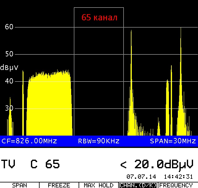 9) Частотний канал: 65, Частота: 823.25 МГц, -- Забит помехой (Не выяснил с какого канала)